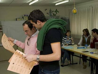 Unos votantes en el colegio Everest de Pozuelo