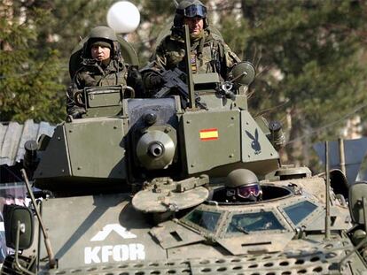 Un blindado español patrullando la semana pasada por la ciudad kosovar de Mitrovica