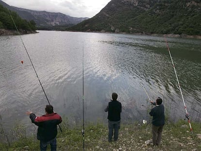 Pescadores, ayer en el pantano de La Baells (Berguedà).