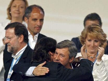 José María Aznar (de espaldas) abraza a Ángel Acebes