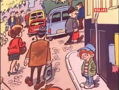 El famoso periodista de las viñetas de Hergé guía al visitante por Bruselas, desde el metro a los bulevares, pasando por hoteles y bares.