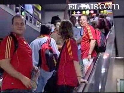 Miles de aficionados llegaban a barajas después de presenciar en directo el partido de Viena.