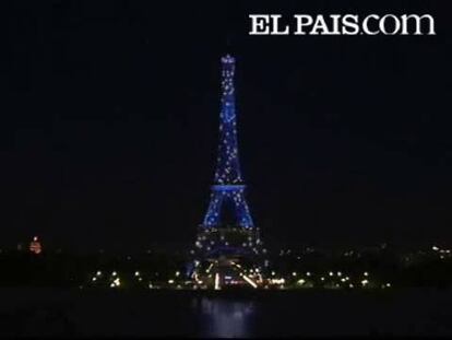 La Torre Eiffel se apagaba anoche para iluminarse de nuevo con los colores de la bandera europea. Las doce estrellas de la bandera brillaban sobre la torre que se vestirá de azul cada noche durante dos meses.