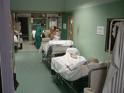 Camas en fila en los pasillos de urgencias del hospital 12 de Octubre