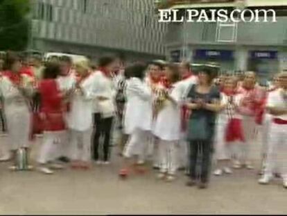 Decenas de pamploneses han interrumpido este mediodía la fiesta para condenar el asesinato de Nagore. La joven de 20 años era natural de Irún.
