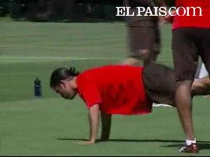 A las 10.00 horas (hora local) de este martes ha comenzado la sesión de entrenamiento del primer equipo azulgrana en Escocia. Antes, sin embargo, los jugadores ya han tenido tiempo de ejercitarse.Y es que Pep Guardiola ha creído conveniente que los jugadores realizasen un primer ejercicio antes de llegar al campo de entrenamiento: los futbolistas han ido corriendo desde el hotel hasta el campo en cuestión. Una vez llegados al campo de entrenamiento, Guardiola ha dividido a la plantilla en tres grupos, que han hecho circuitos físicos sin pelota, trabajando la fuerza y los cambios de dirección. Éric Abidal, con molestias en el tendón de Aquiles del pie izquierdo, no se ha entrenado esta mañana y es duda para la sesión de la tarde.