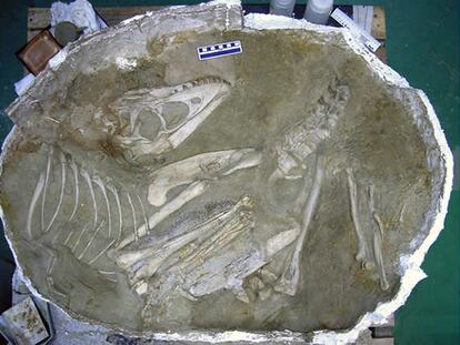 Hallado el esqueleto fosilizado casi intacto de un dinosaurio en el desierto del Gobi