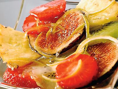 'Carpaccio' de piña, kiwi, fresón, ciruelas, higos o brevas
