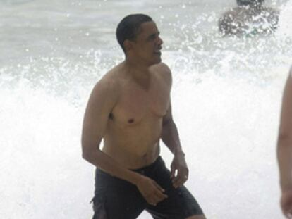 El candidato demócrata practica el 'bodysurfing' en las playas de su Hawái natal