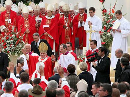 Cientos de personas acompañan a Benedicto XVI en la procesión de las antorchas