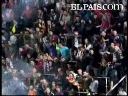Identificados por las cámaras de seguridad de Montjuic los cinco radicales que lanzaron bengalas en el derbi