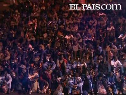 229 inmigrantes han llegado esta noche a Tenerife. Se trata del mayor número de subsaharianos que llega a las costas canarias. El cayuco, avistado por Salvamento Marítimo a 55 millas de la isla de Gran Canaria, fue remolcado hasta el puerto de Los Cristianos.