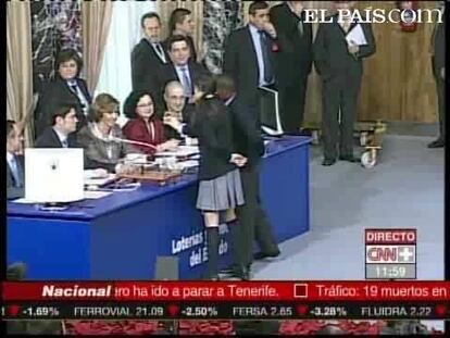 Así han cantado los niños del colegio San Ildefonso el 'Gordo' de Navidad. Un primer premio dotado de tres millones de euros que se ha conocido a las doce en punto de este mediodía.