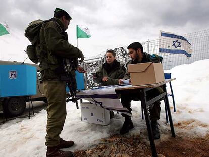 Un soldado israelí recoge su papeleta para votar