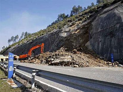 La A-6 a la altura de Becerreá (Lugo) tras el desprendimiento producido