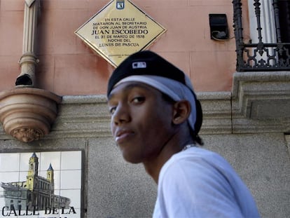 Placa conmemorativa del asesinato en 1578 de Juan Escobedo