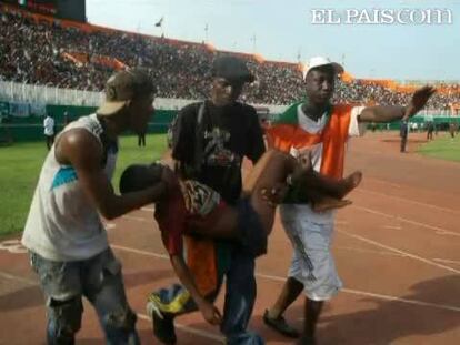 El suceso tuvo lugar en la capital, Abiyán, cuando se disputaba el partido de clasificación para el Mundial de Suráfrica 2010 contra Malaui. Hay al menos 22 personas muertas y alrededor de 130 heridos. La avalancha se produjo antes de comenzar el encuentro, cuando una multitud derribó una de las puertas de acceso a las gradas.