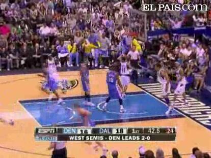 El alero Carmelo Anthony encestó un triple cuando restaban menos de cinco segundos para el final y los Nuggets de Denver vencieron 106-105 a los Mavericks de Dallas en la etapa de semifinales de la Conferencia Oeste de la NBA.