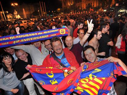 Decenas de miles de personas toman <b>Barcelona</b> para festejar un 'triplete' que también se celebró en <b>Madrid</b>
