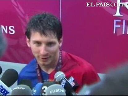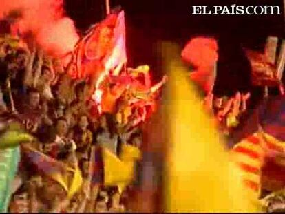 El Barcelona hizo ayer historia al ser el primer equipo español que consigue los tres principales títulos en una misma temporada. Los jugadores barcelonistas celebraron la victoria por todo lo alto.