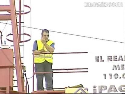 A las cinco de la mañana, el empresario Carlos Mateos ha entrado en las obras de la residencia para categorías inferiores que el Real Madrid construye en su ciudad deportiva en Valdebebas, Madrid, para reclamar, subido en una grúa, el dinero que le debe la empresa.