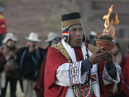 Unas 25.000 personas se acercaron la madrugada de hoy en la ciudad pre-incaica de Tiahuanaco, en Bolivia, para recibir el Año Nuevo