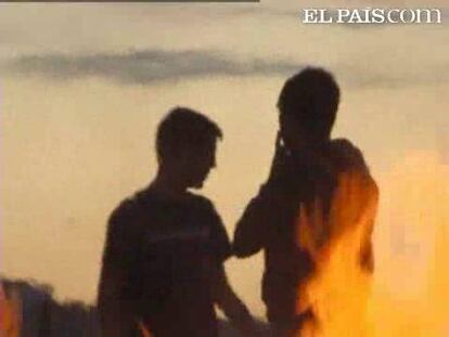 Los más jóvenes cumplen con la tradición de saltar por encima de las hogueras en la playa coruñesa