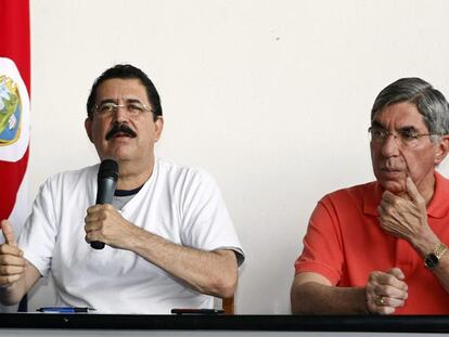Manuel Zelaya, junto al presidente de Costa Rica, Óscar Arias
