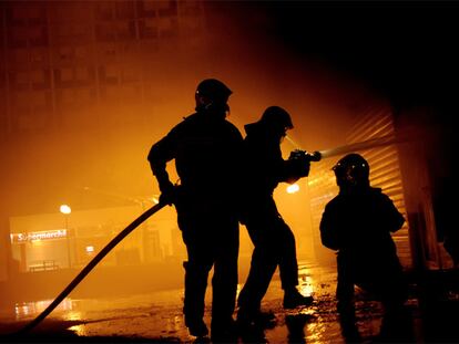 Bomberos en un centro comercial de Firminy