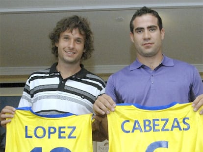 Raúl López y Carlos Cabezas con las camisetas del Khimki