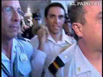 Alberto Contador, bicampeón del Tour de Francia, ha llegado a Madrid donde ha sido aclamado por sus vecinos de Pinto y todos sus fans. Vestidos de amarillos los miles de seguidores del ciclista esperaban ansiosos su llegada para poder festejar el segundo triunfo de Contador en Francia. Su familia al completo se ha acercado hasta el aeropuerto para darle la bienvenida.