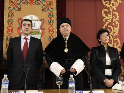 Patxi López durante el acto oficial de inauguración del curso en la Universidad de Deusto