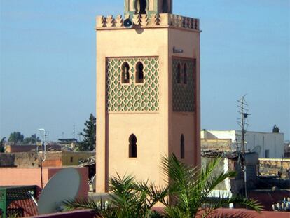 Una cigüeña en un minarete en la medina de Marrakech
