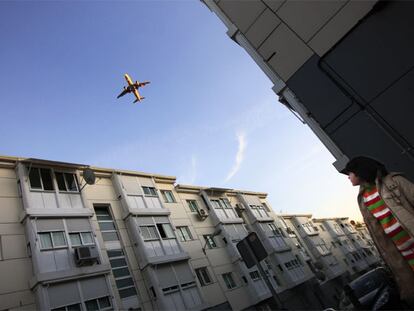 Un avión atraviesa el cielo sobre San Fernando de Henares