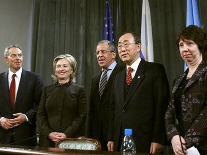 Tony Blair, junto a los miembros del Cuarteto (Hillary Clinton, Sérgei Lavrov, Ban Ki-moon y Catherine Ashton)