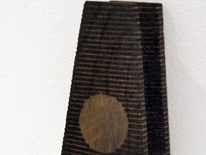 Escultura de la serie <i>Voewood</i>, de 2007, realizada por Roger Ackling.