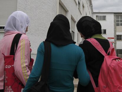 Tres alumnas con velo del instituto Jaime Ferrán