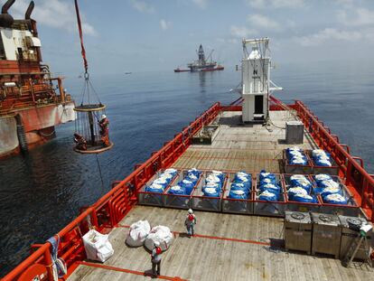 Operaciones para colocar la campana que tapará una de las fugas de crudo