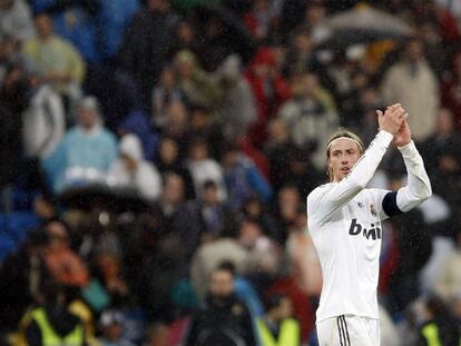 Guti aplaude a los seguidores del Madrid