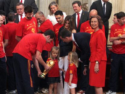 Las infantas Leonor y Sofía saludan a Iker Casillas