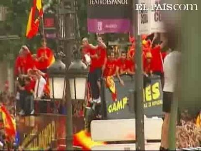Madrid sale a la calle en masa para recibir a los jugadores de la selección española, que vivieron una agotadora jornada de agasajos, desfiles y fiesta