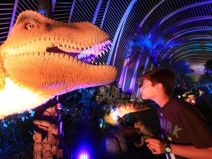 Un tiranosaurio de la exposición 'Entre dinosaurios' en Valencia.