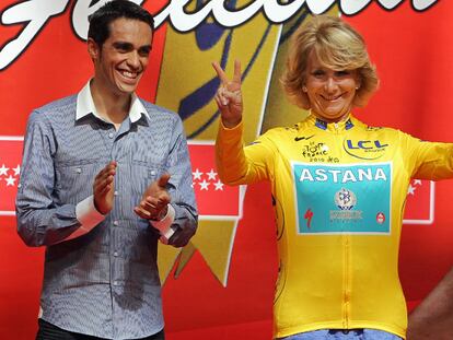 Esperanza Aguirre, con el maillot amarillo de Contador.