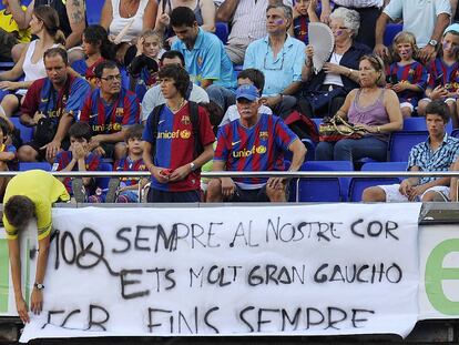 El milanista, que vistió una camiseta en la que se leía "Barça, ti amo", recibe infinitas muestras de afecto