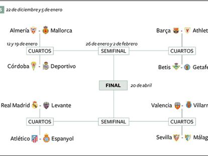 El sorteo de octavos depara un Real Madrid-Levante y dos derbis regionales: Sevilla-Málaga y Valencia-Villarreal.- El equipo de Guardiola y el de Mourinho podrían verse las caras en la final