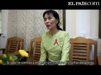 La líder birmana Aung San Suu Kyi recibe a EL PAÍS en la sede de su partido. Suu Kyi fue puesta en libertad el pasado 13 de noviembre tras pasar 15 de los últimos 21 años bajo arresto