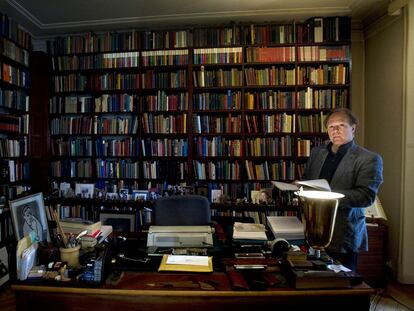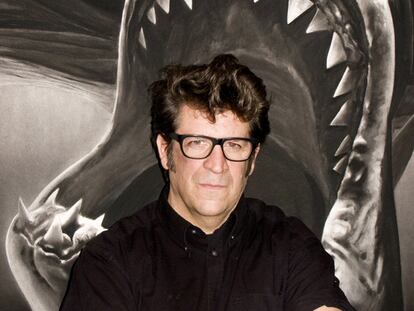 El artista estadounidense Robert Longo, ante su dibujo <i>Study for shark 7</i> (2008).