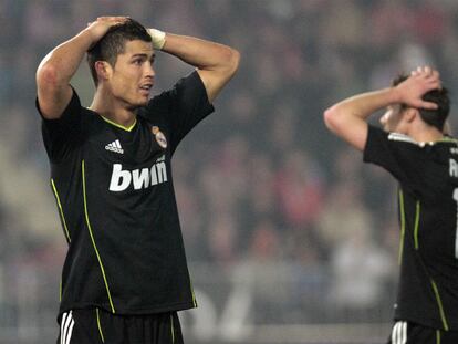 Ronaldo y Xabi Alonso tras un disparo del portugués