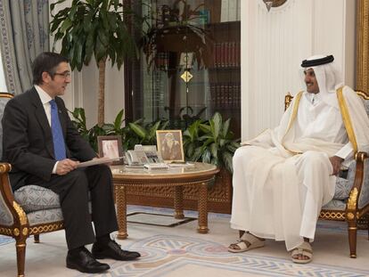 López, durante la reunión que mantuvo ayer con el príncipe heredero de Catar