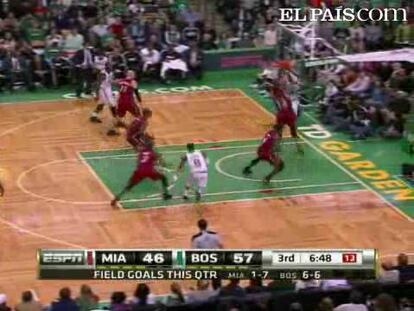 Rajon Rondo cuajó una espléndida actuación con un triple doble, 11 puntos, 10 rebotes y 10 asistencias, y fue decisivo en el triunfo de Boston ante Miami (85-82), el tercero de los Celtics sobre los Heat esta temporada. Paul Pierce tuvo un día aciago en ataque. Solo anotó un punto -falló sus 10 tiros de campo- lo que no ocurría desde su temporada de novato (98-99).